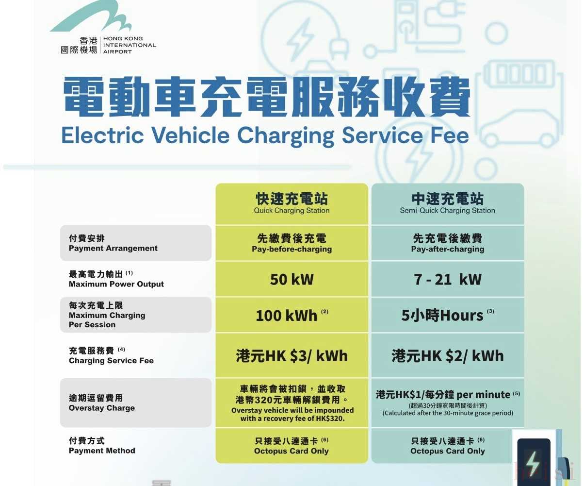 除了購車時的政策優(yōu)惠,電動車在日常使用成本上也有優(yōu)勢。記者在香港停車場的公共充電樁處看到,充電計費分為兩種方式:一種是按時長計費,常規(guī)價格為30港元/小時,部分時段會推出限時優(yōu)惠價(21港元/小時),且不滿1小時按1小時計算;另一種是按電量計費,機場的快充站中,每度電的價格僅為3港元。值得注意的是,為保障充電樁高效利用,充電完成后車輛需立即駛離,車位管理十分嚴格,避免長期占用充電車位。