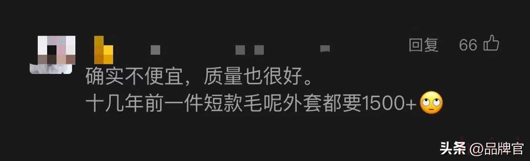 有網(wǎng)友反饋,即便是實(shí)體店在售的羊毛大衣,其面料手感也今非昔比,基礎(chǔ)款折后仍標(biāo)價(jià)千元以上,而手感稍好的款式則需兩三千元。