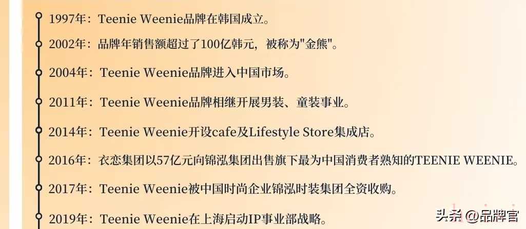 三十年河?xùn)|三十年河西一只小熊的起起落落自1980年在韓國誕生以來,衣戀集團(tuán)歷經(jīng)數(shù)十年發(fā)展,大概在2000年代中后期迎來鼎盛時(shí)期,恰好伴隨著80后、90后的青春成長軌跡,不少同齡人感慨:E·LAND的小熊(Teenie Weenie)幾乎裝點(diǎn)了我們整個(gè)少女時(shí)代的夢(mèng)。
