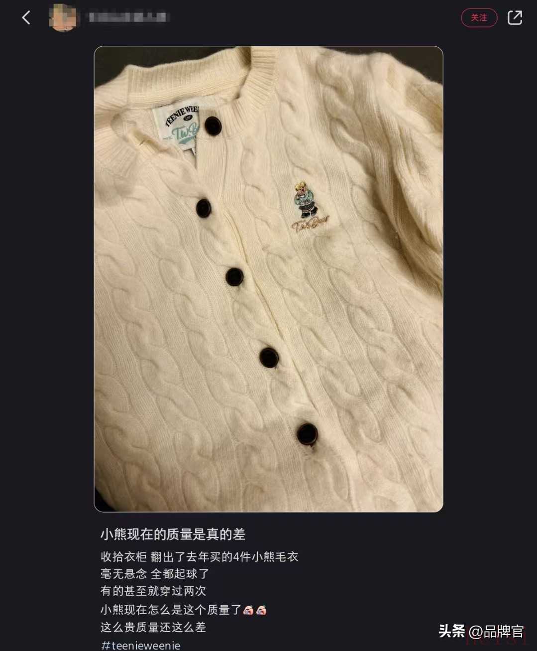 與此同時(shí)不少消費(fèi)者注意到,Teenie Weenie其商品的品質(zhì)與口碑已難復(fù)當(dāng)年。