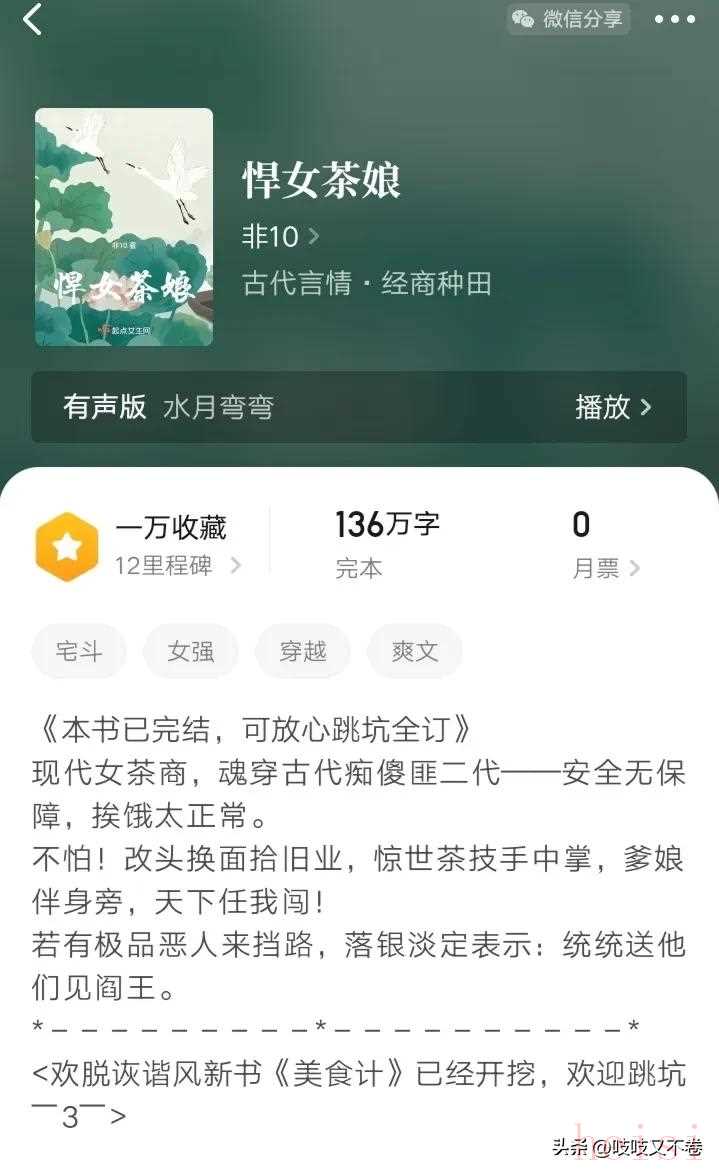 5.《悍女茶娘》作者:非10