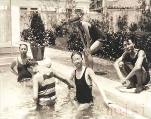 在30年代的上海,時(shí)髦人士都有那么幾張泳裝照。我們常常能那些引領(lǐng)時(shí)尚的香煙殼、月份牌等上看到它的出現(xiàn)。上圖為,1946年戲劇旬刊畫報(bào)1冊(cè),梅蘭芳在美國(guó)期間的泳裝照。