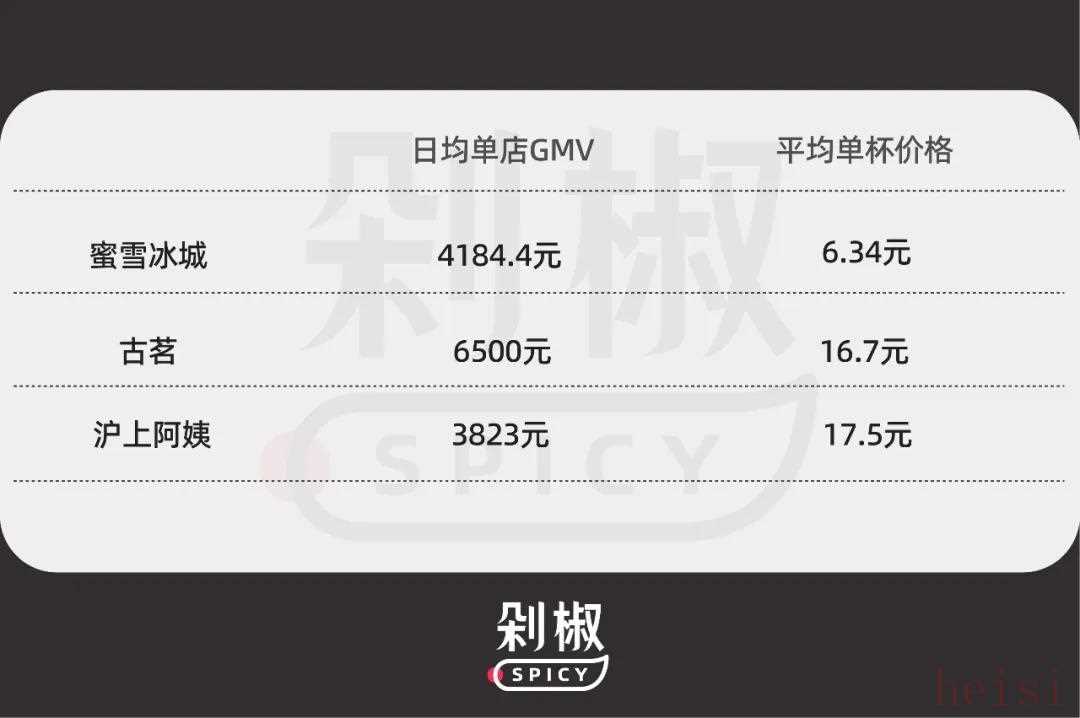 然而,對(duì)比現(xiàn)有數(shù)據(jù)會(huì)發(fā)現(xiàn)一個(gè)有趣現(xiàn)象:?jiǎn)伪瓋r(jià)格最高的滬上阿姨,單店 GMV 反倒最低。