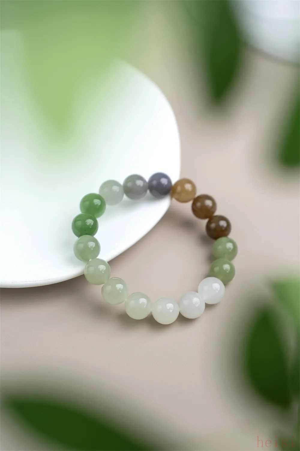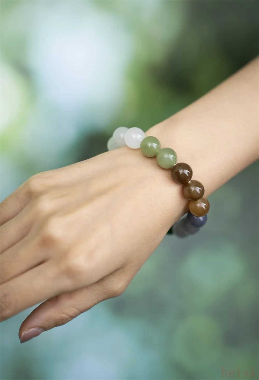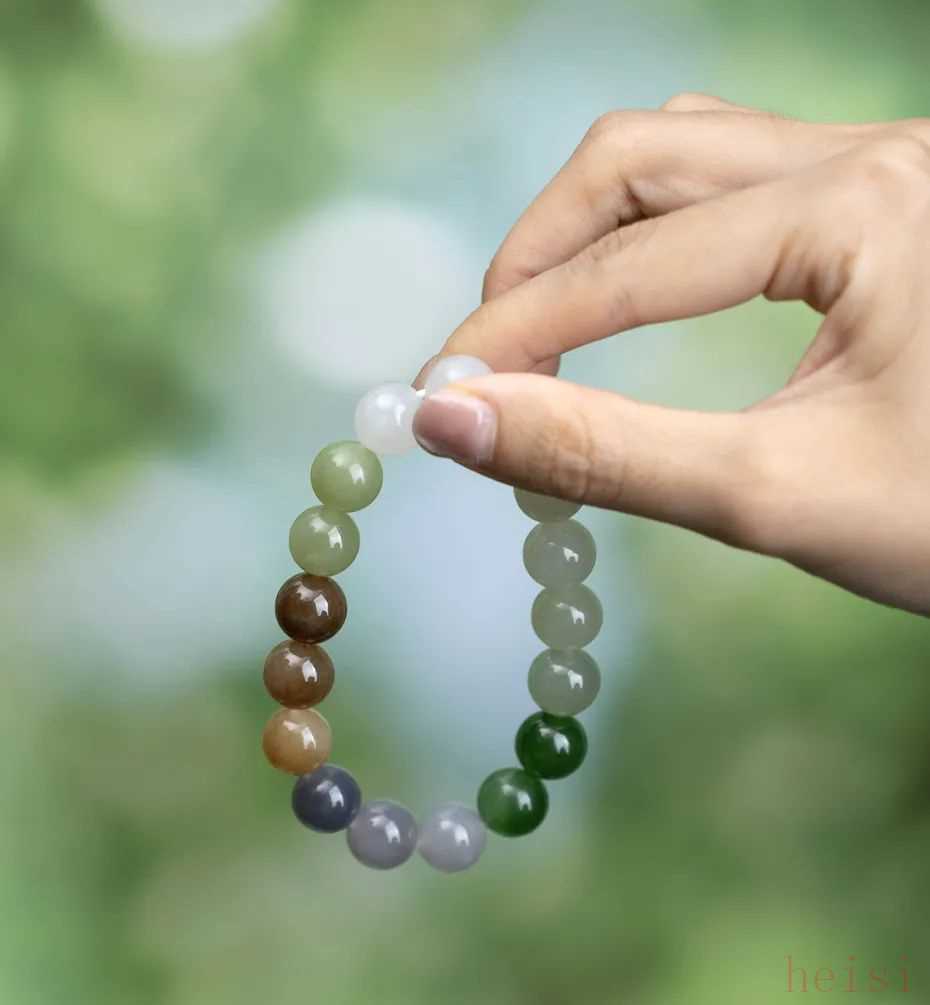 綠色清透的碧玉珠、如山澗清泉的晴水珠、凝如羊脂的白玉珠、甜美溫潤的糖玉珠、煙波朦朧的冰紫珠……油度和色澤十分如一,簡直就是你手腕的調(diào)色盤。