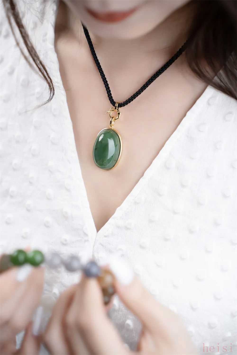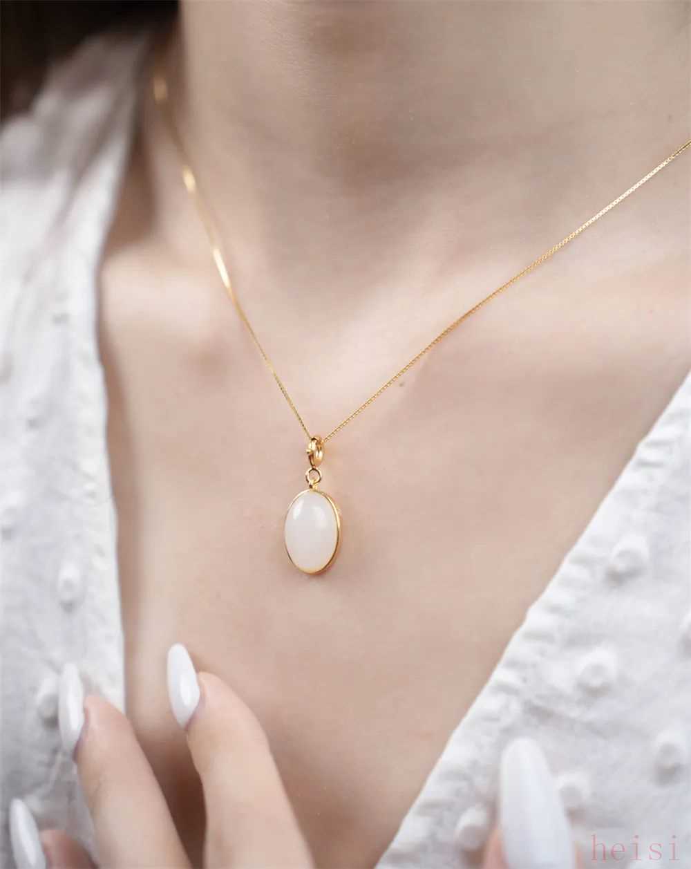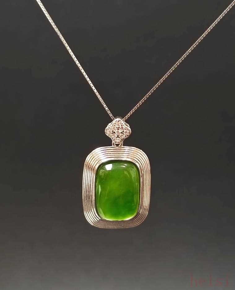 這顆碧玉蛋面有著濃郁的翠色,都是師傅們仔細挑選的,佩戴起來不覺得突兀,在頸間清雅秀氣,而更顯大氣華貴。