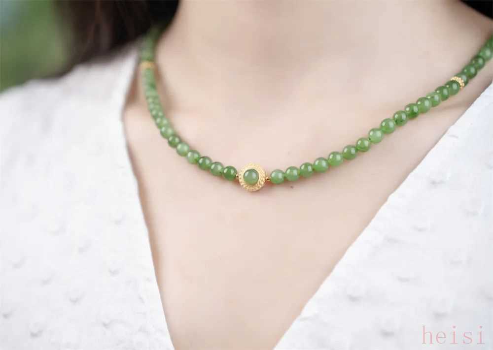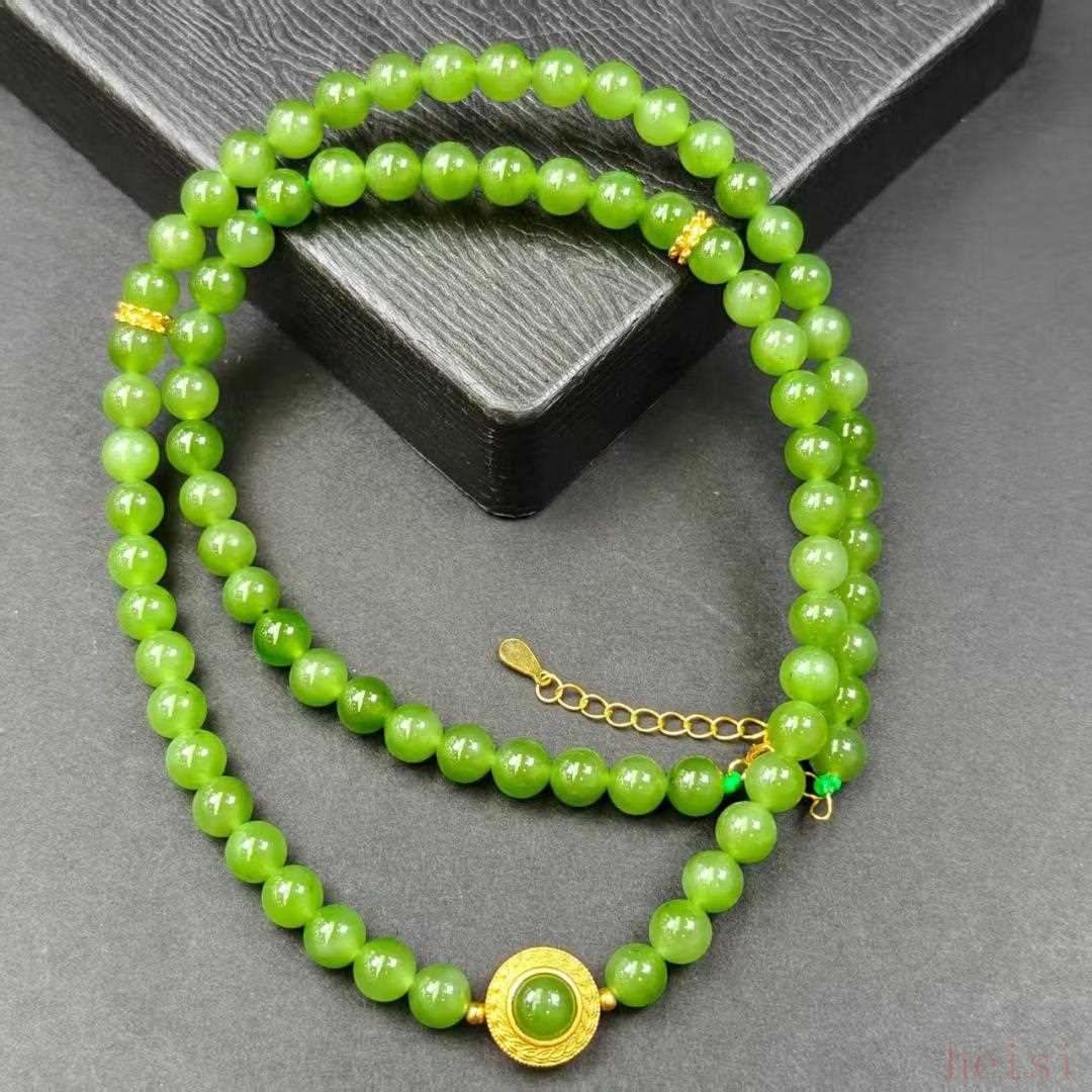 因此,一條質(zhì)量上乘的碧玉珠鏈在上身時,你會感受到它的驚艷。綠色自然如春日的綠柳,隨你身形轉(zhuǎn)動的每一個瞬間去綻放生命力的旺盛感。