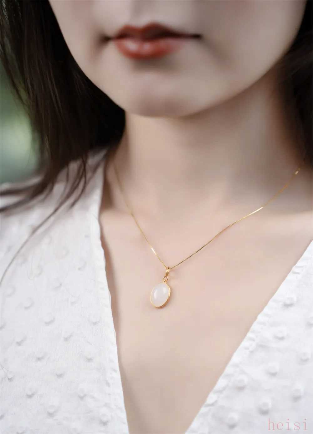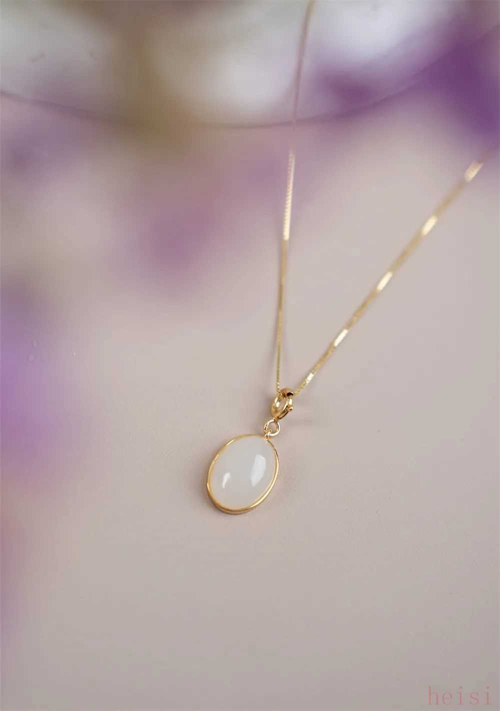 溫潤瑩潔的白玉與金色鑲嵌,正是“金玉良緣”的好意頭。在脖頸間綻放古典美色,交相輝映。