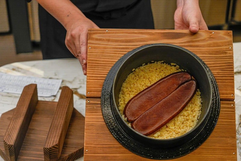 菜單中最受矚目的當(dāng)屬與,龍蝦三吃包括龍蝦可頌佐明太子醬、日本琴酒焰燒野生大龍蝦、龍蝦蝦膏味噌湯;和牛二吃則能享受到日本極上A5和牛壽喜燒、麥卡倫焰燒A5和牛牛排。而且餐點(diǎn)皆會(huì)在饕客眼前演繹鐵板火焰秀,火光與香氣交錯(cuò),成為整場(chǎng)饗宴的華麗高潮。
