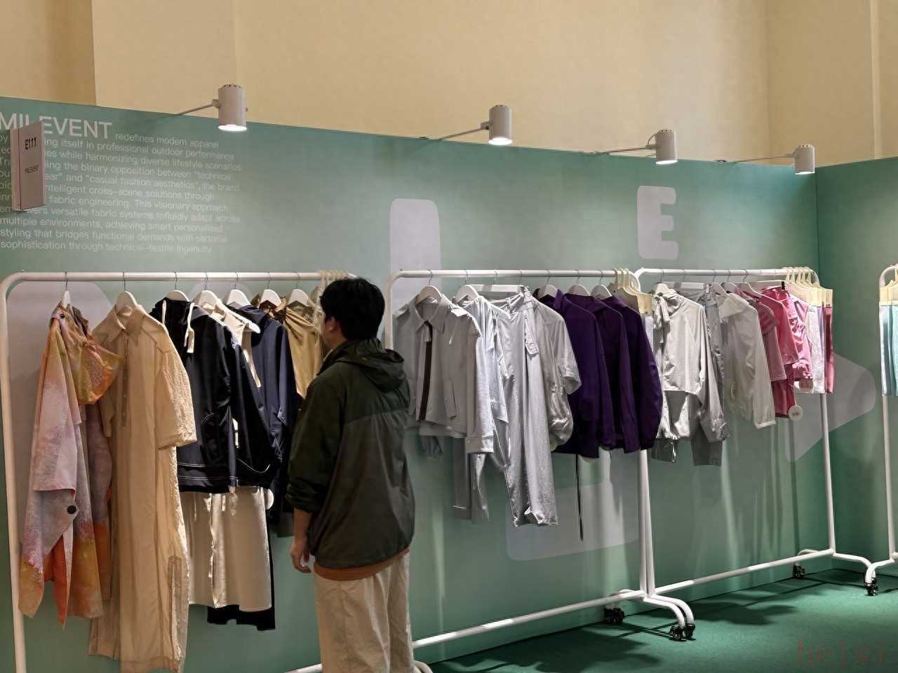 界面時(shí)尚在Fab Fabs展區(qū)期間看到,覓樂MILEVENT展示的不僅是面料樣板,而是基于材料特性完成的一整套成衣設(shè)計(jì),可以讓到場(chǎng)客戶更直觀地感受功能性與時(shí)裝性的融合。