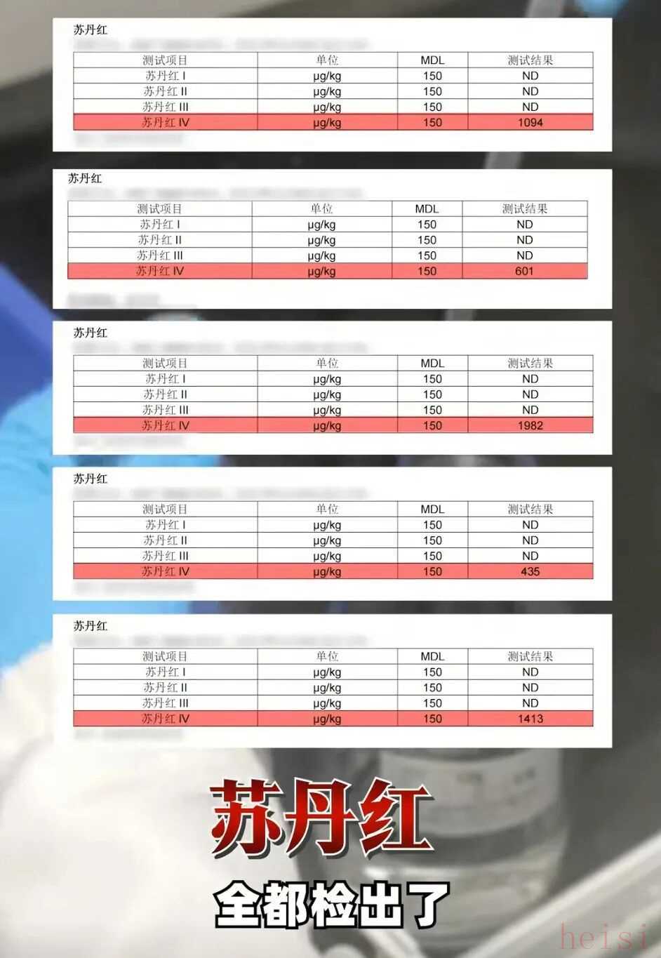 此后,蘇丹紅又被曝出在鴨蛋、調(diào)味料、方便面等食品中檢出,還有不法商家在飼料中添加蘇丹紅4號(hào),使蛋黃顏色更鮮艷。目前包括中國在內(nèi)的世界各國都已經(jīng)禁止在食品中使用蘇丹紅。