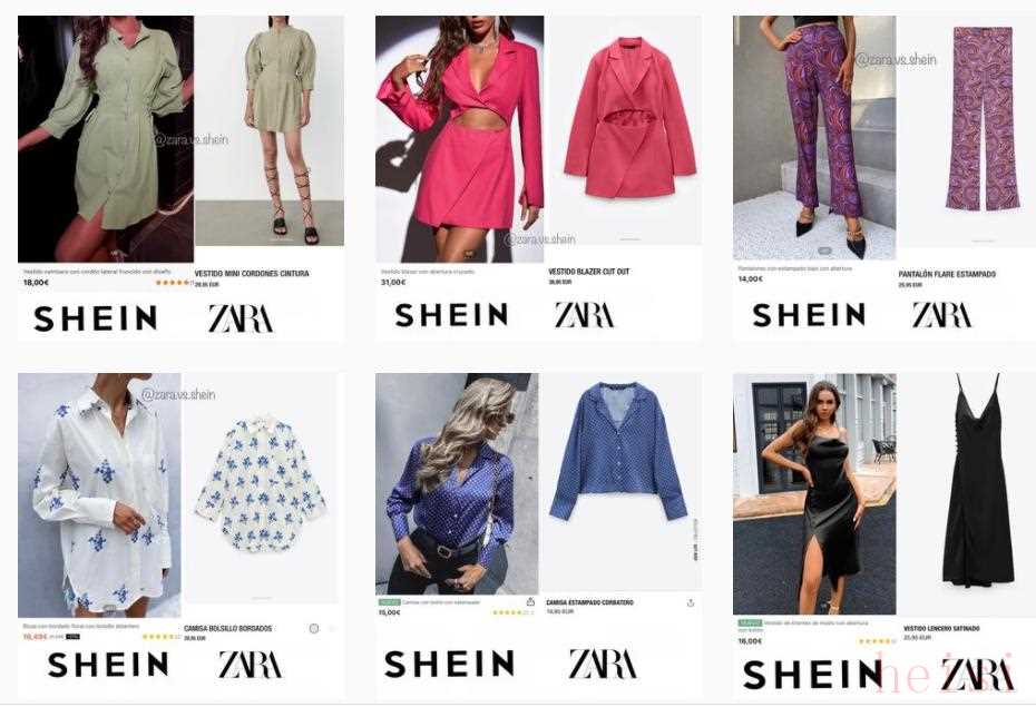 抄襲也是快時尚常被詬病的問題,一個在ZARA和SHEIN之間“找相同”的賬號,在Instagram上獲得了4.5萬粉絲
