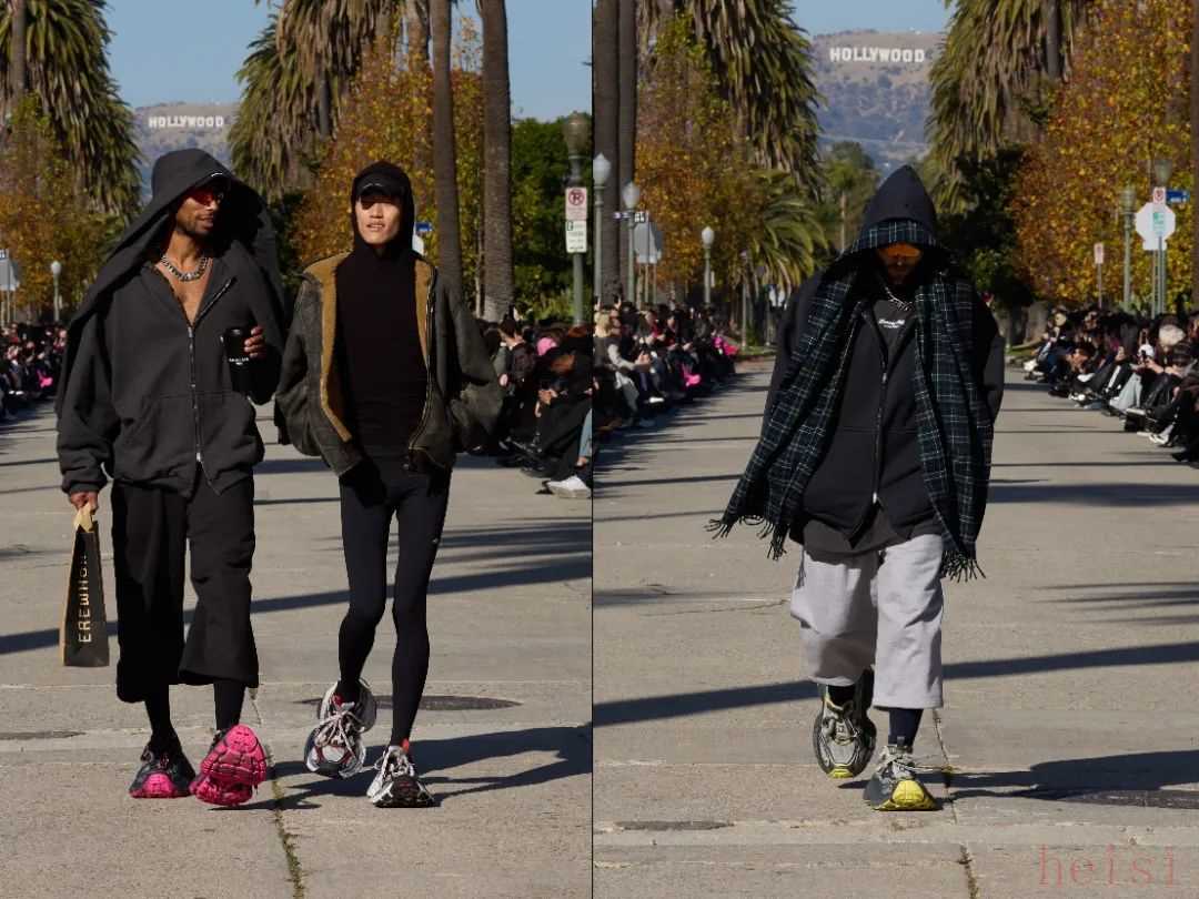 奢侈品圈的時(shí)尚先鋒巴黎世家更不必多說(shuō),早在2024秋季秀場(chǎng)上,七分褲就占據(jù)了主流。純棉運(yùn)動(dòng)款七分褲或疊穿于長(zhǎng)褲之外制造視覺(jué)層次,或直接搭配廓形運(yùn)動(dòng)鞋與高筒靴單穿。這種打破常規(guī)的穿搭邏輯,正是巴黎世家一貫“放飛自我” “生人勿擾”的品牌態(tài)度。