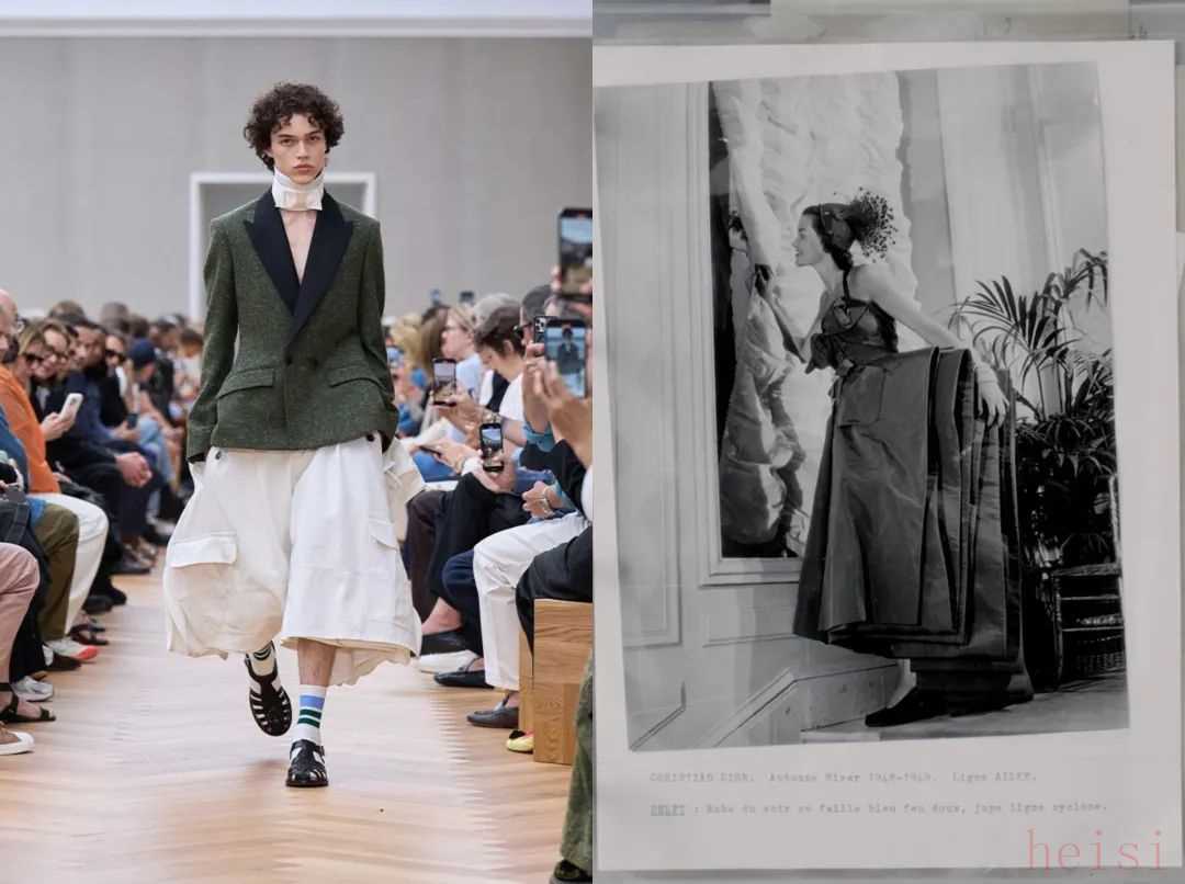 話題度在風(fēng)口浪尖上的DIOR 2026夏季男裝大秀上,新任創(chuàng)意總監(jiān)Jonathan Anderson用一條名為“Delft”的“斗魚(yú)”七分褲為大秀拉開(kāi)序幕。這條褲子靈感源自DIOR檔案庫(kù)中的同名高定禮服,通過(guò)夸張的膨脹廓形和層疊設(shè)計(jì),在懷舊與未來(lái)感之間找到平衡,穿上就是慵懶叛逆的年輕貴族。