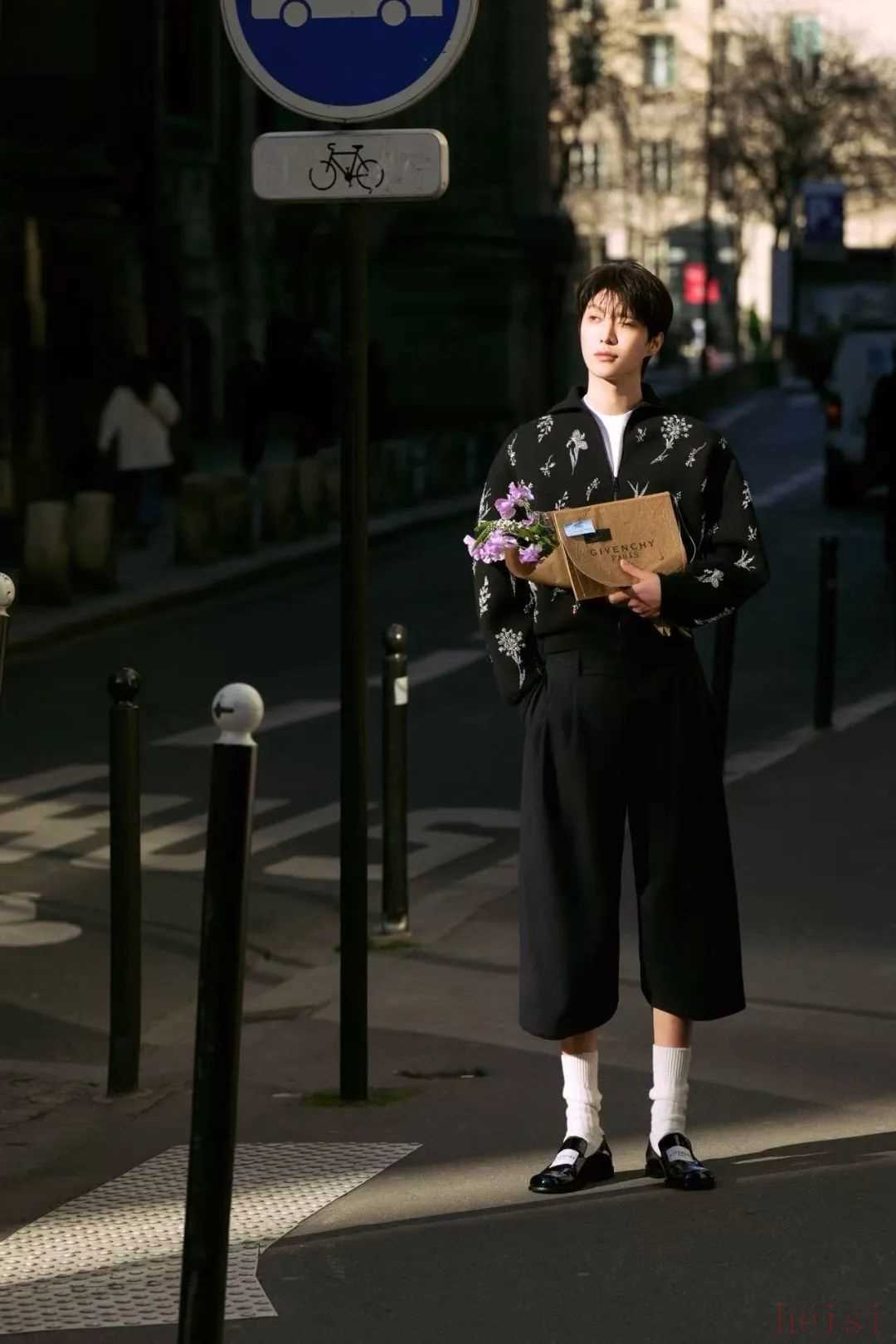 相比LV的“潮”,紀(jì)梵希的七分褲更加傾向于“奢”。在紀(jì)梵希2025秋冬大秀現(xiàn)場(chǎng),品牌代言人范丞丞選擇了一條具有紀(jì)梵希招牌剪裁特色的黑色西裝七分褲,版型隨性利落,搭配精致刺繡夾克、白襪和樂(lè)福鞋,將品牌的奢和少年的酷巧妙結(jié)合。
