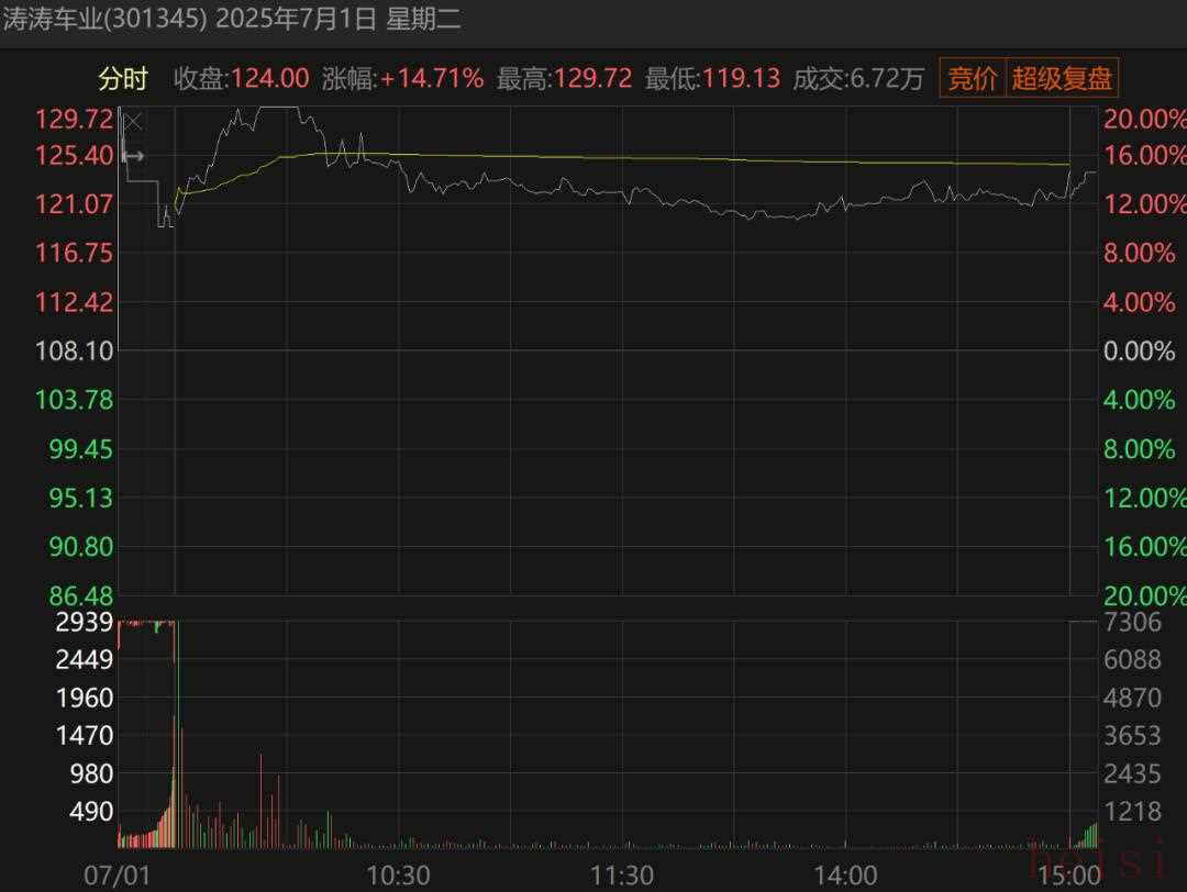 7月1日,濤濤車業(yè)盤中20cm大號漲停,收盤大漲近15%,引發(fā)投資者廣泛關(guān)注。