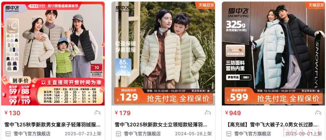 2.在「雪中飛官方旗艦店」店鋪開啟定金預(yù)售的商品內(nèi),一款到手價59元起的“雪中飛25秋季新款男女童親子輕薄羽絨服馬甲/內(nèi)恤輕便疊穿零壓”的預(yù)定與收藏數(shù)據(jù)最佳,且其店鋪爆款均集中于羽絨服品類。