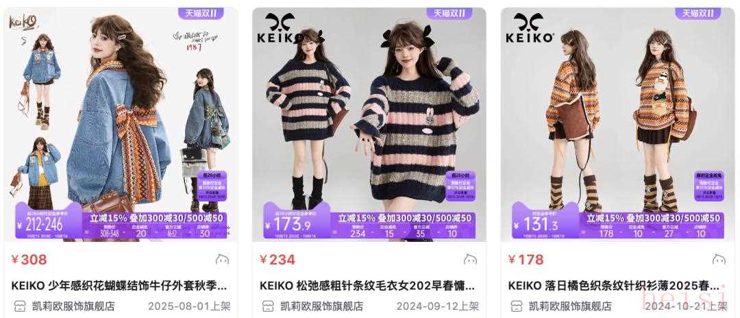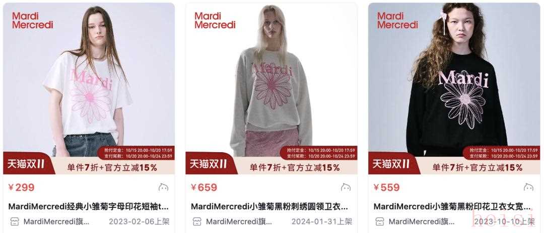 5.本次榜單上還有「凱莉歐服飾旗艦店」與「MardiMercredi旗艦店」為新上榜店鋪,主打的都是少女風(fēng)。
