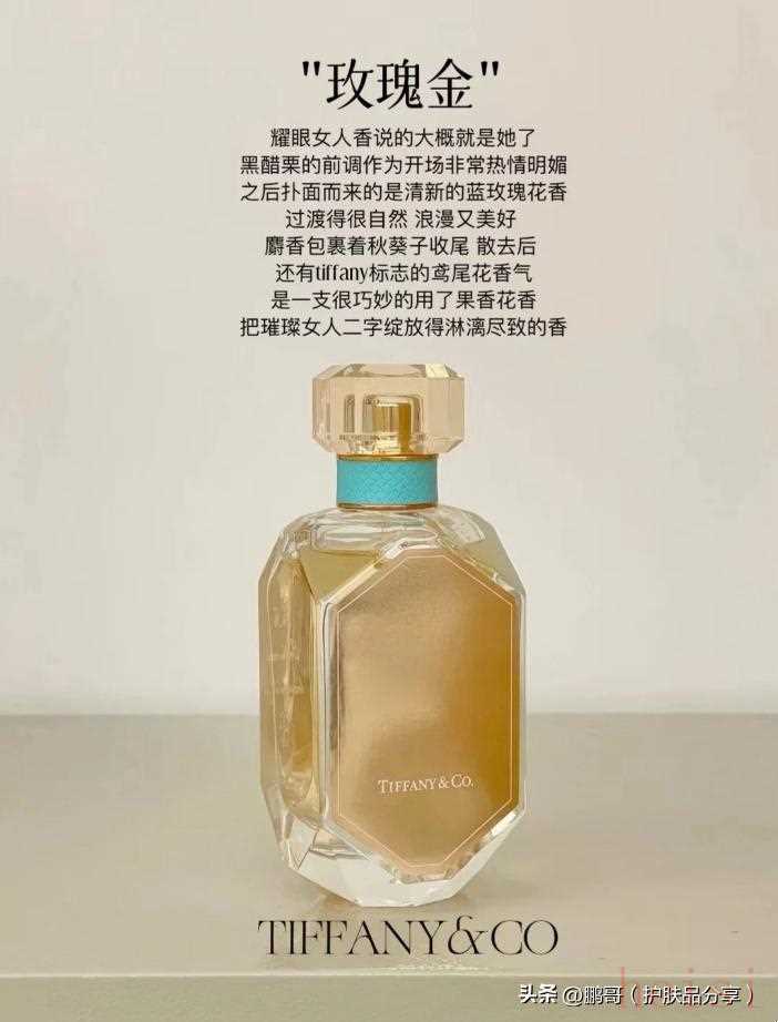 第六款:tiffany玫瑰金這款香水以其永恒的玫瑰金瓶身,如同鉆石般璀璨奪目。初聞之下,濃郁的黑加侖香氣撲面而來(lái),緊接著是藍(lán)玫瑰的清新,仿佛置身于玫瑰花園中,溫柔而繾綣。隨著溫度的升高,麝香的香氣逐漸凸顯,展現(xiàn)出一種不忘初心、堅(jiān)定而柔和的女性力量。