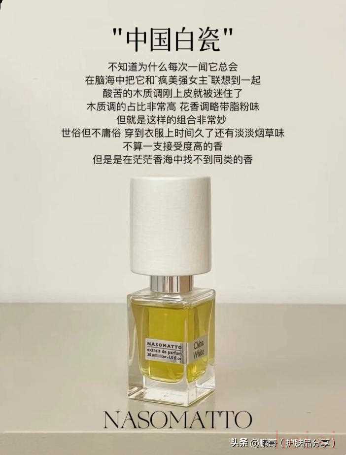 第四款:NASOMATTO中國(guó)白瓷不知道為什么每次一聞它總會(huì),在腦海中把它和“瘋美強(qiáng)女主”聯(lián)想到一起,酸苦的木質(zhì)調(diào)剛上皮就被迷住了,木質(zhì)調(diào)的占比非常高花香調(diào)略帶脂粉味。