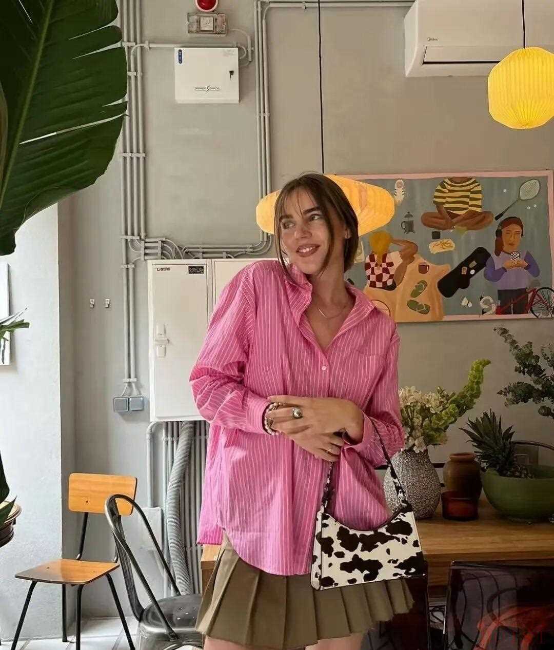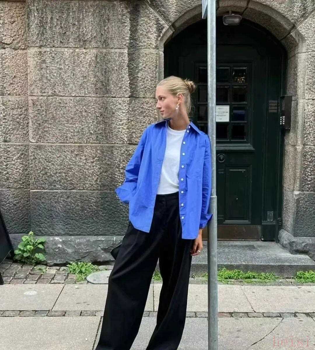 "穿搭建議:" 搭配簡(jiǎn)單的牛仔褲或半身裙,卷起袖子,露出纖細(xì)的手腕,是展現(xiàn)法式隨性的最佳方式。
