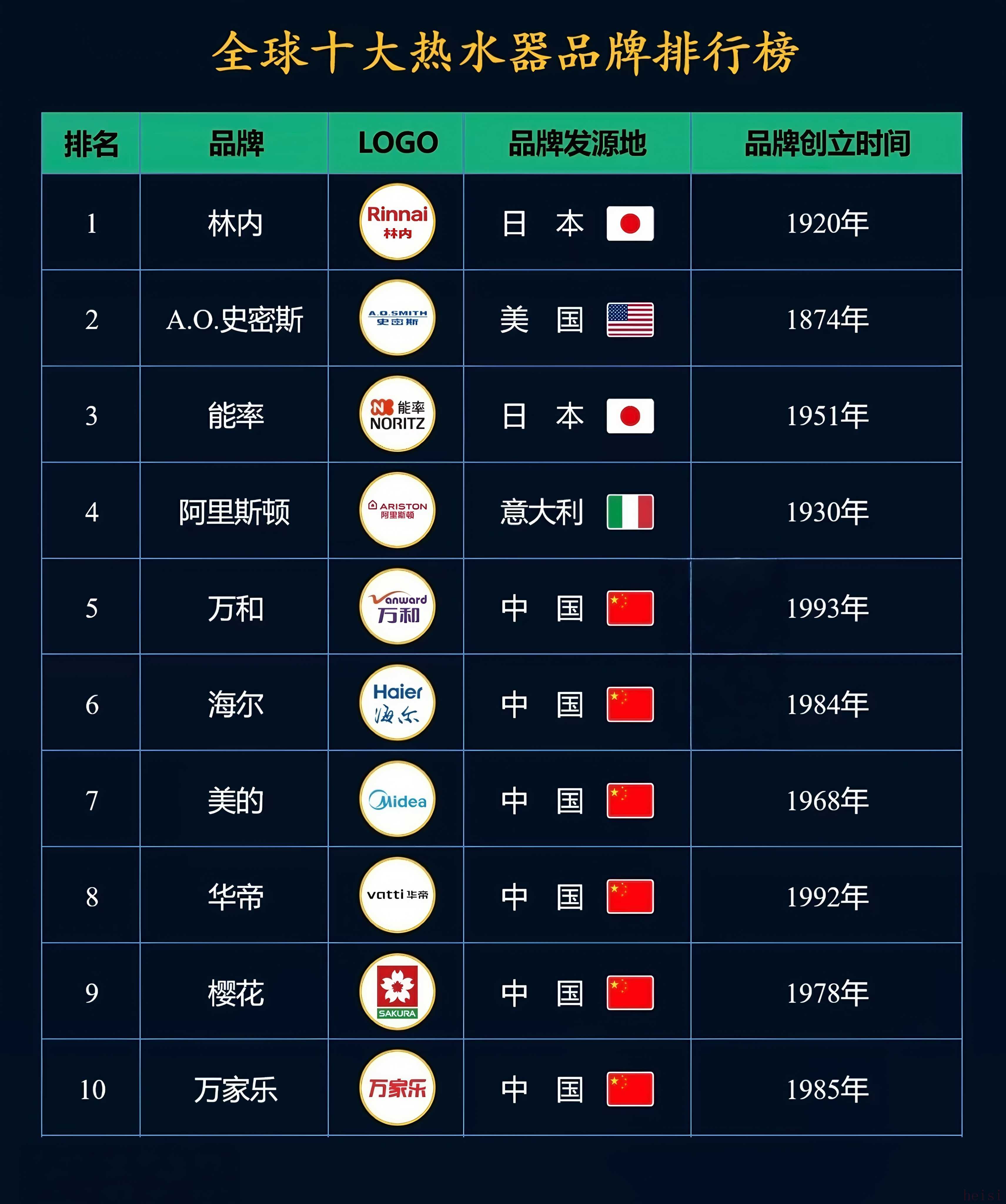 排在第一的是日本的林內(nèi),還有第三的能率;第二的是美國(guó)的史密斯,以及意大利的阿里斯頓,這些品牌都是上世紀(jì)就成立的老牌子,技術(shù)積累確實(shí)比較久!