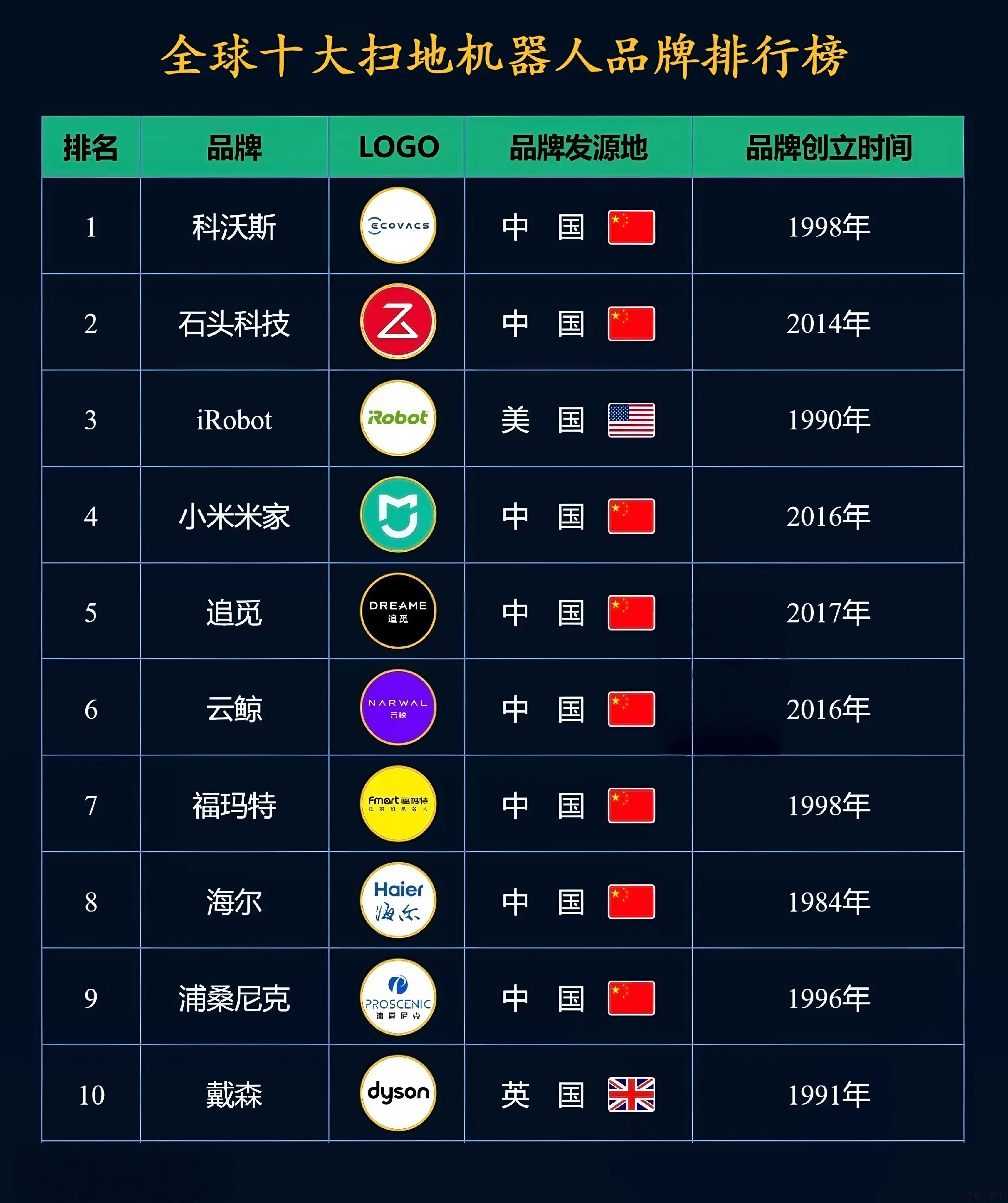 全球十大掃地機(jī)器人榜中,發(fā)現(xiàn)10個(gè)品牌里8個(gè)都是中國(guó)的,分別是科沃斯穩(wěn)占榜一,緊隨其后的是石頭科技,其次是小米、追覓、云鯨、?,斕氐鹊?!