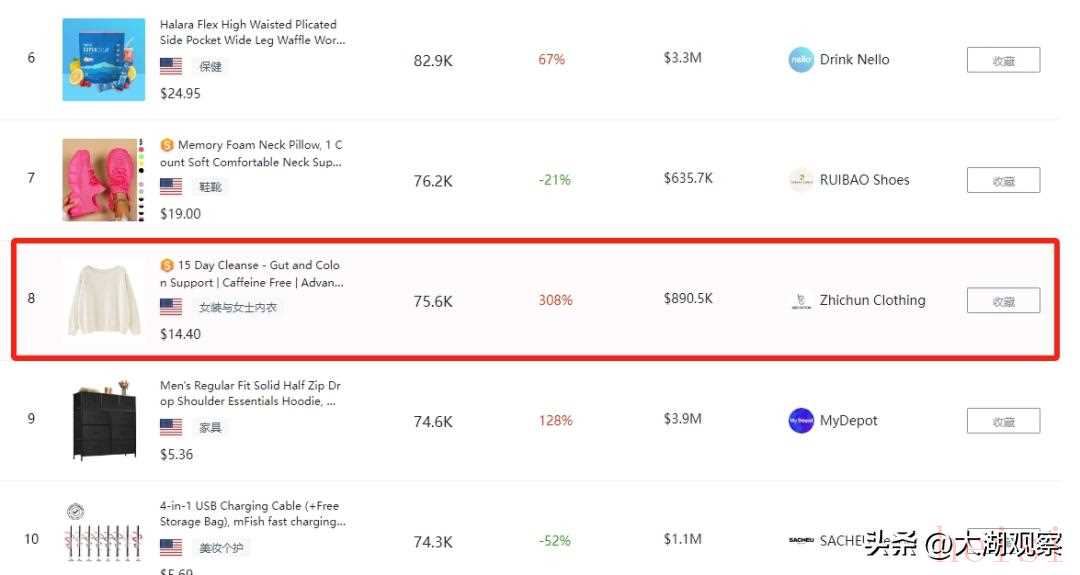 圖源:嘀嗒狗Zhichun Clothing在美國主營女裝與女士內(nèi)衣,主要通過與TikTok網(wǎng)絡(luò)達(dá)人合作發(fā)布推廣視頻帶貨。數(shù)據(jù)顯示,小店中最暢銷的產(chǎn)品是一款毛衣,占據(jù)全店總銷售量的九成多,以其柔軟的面料、親民的價(jià)格在海外大受歡迎。