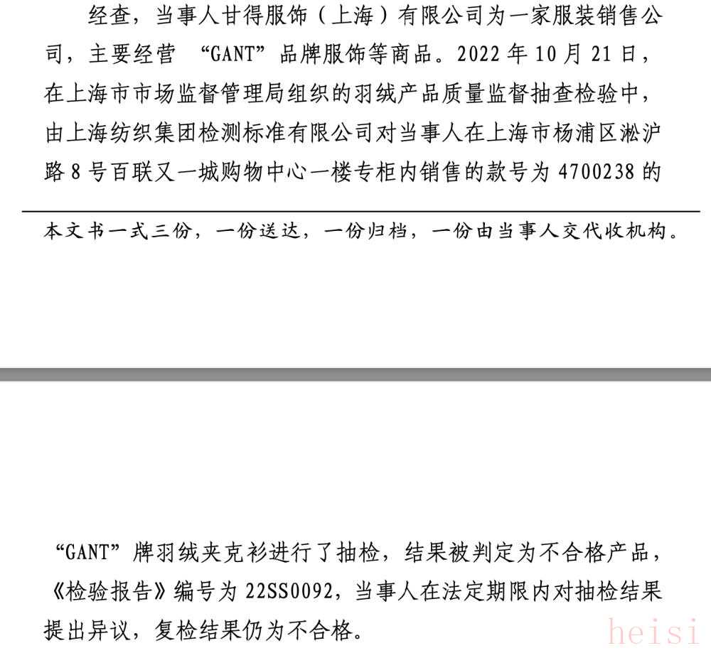 根據(jù)公開(kāi)信息,GANT品牌確實(shí)曾因銷售羽絨夾克衫存在以次充好、質(zhì)量不合格的問(wèn)題而受到處罰。