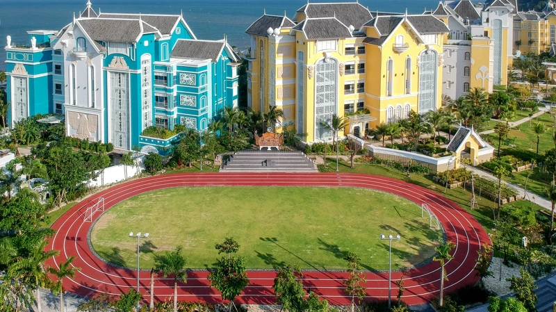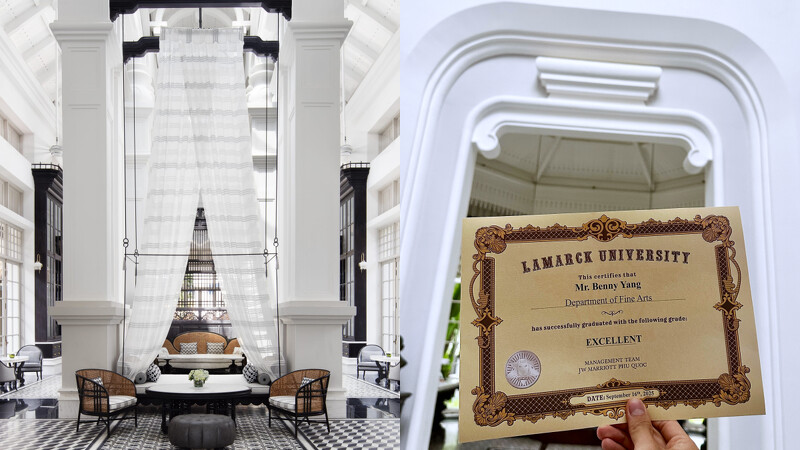 2017年開(kāi)幕、距離富國(guó)島國(guó)際機(jī)場(chǎng)30分鐘車程的,是建筑鬼才設(shè)計(jì)師Bill Bensley又一奇幻大作。以虛構(gòu)的為靈感發(fā)想,彷彿踏進(jìn)一所遺落在海邊的傳奇校園,帶領(lǐng)住客重回?zé)o憂的學(xué)生時(shí)期。兼具殖民風(fēng)格、學(xué)院故事、繽紛想像的造景中創(chuàng)造截然不同的奢華酒店感受。入住手續(xù)就像、會(huì)得到一本新生手冊(cè);大廳與走廊遍布著校長(zhǎng)雕像、公告欄、獎(jiǎng)盃、運(yùn)動(dòng)裝備及紀(jì)念照片,形塑傳奇大學(xué)的歷史氣息;而在退房時(shí)會(huì)頒發(fā),每位入住過(guò)的游客都會(huì)是校友。