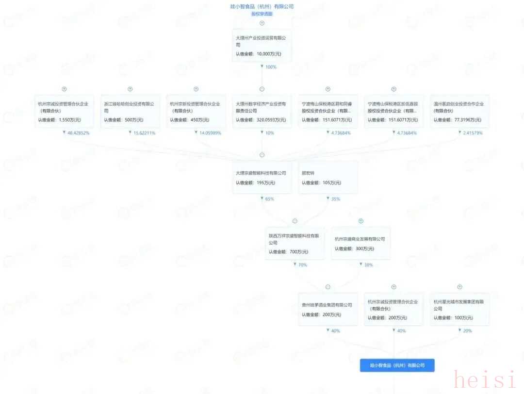 公眾號還透露,娃小智的前身是大理宗盛智能科技有限公司(背后為大理州數(shù)字經(jīng)濟(jì)產(chǎn)業(yè)投資有限責(zé)任公司控股)。 大理與大連兩地國資基于對娃哈哈品牌力及宗慶后先生的影響力下,投入巨資。娃小智食品(杭州)有限公司的股權(quán)向上穿透后,核心股東之一為貴州娃茅酒業(yè)集團(tuán)有限公司。