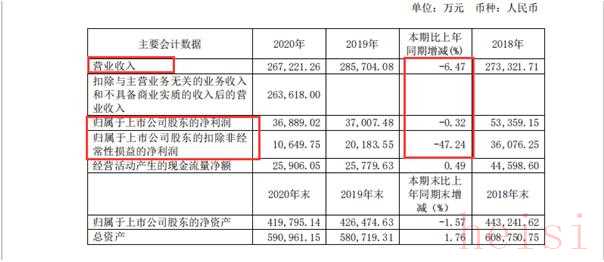 九牧王2020年年度報告顯示,報告期內(nèi),實現(xiàn)營收26.72億元,同比上一年下滑6.47%;歸屬于上市公司股東的凈利潤3.69億元,同比上一年同期下滑0.32%;歸屬于上市公司股東的扣除非經(jīng)常性損益的凈利潤1.06億元,同比上一年同期下滑47.24%。