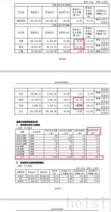 剛剛,“褲王”九牧王披露了2020年年度報告,顯示,報告期內(nèi),營收、凈利同比雙雙下滑。其中,主營業(yè)務即服裝銷售營收同比下滑5.83%、全年關閉實體門店447家。