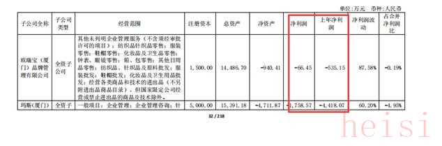 歐瑞寶(廈門)品牌管理有限公司,為九牧王全資子公司,2020年的凈利潤為-66.45萬元,2019年的凈利潤為-535.15萬元。