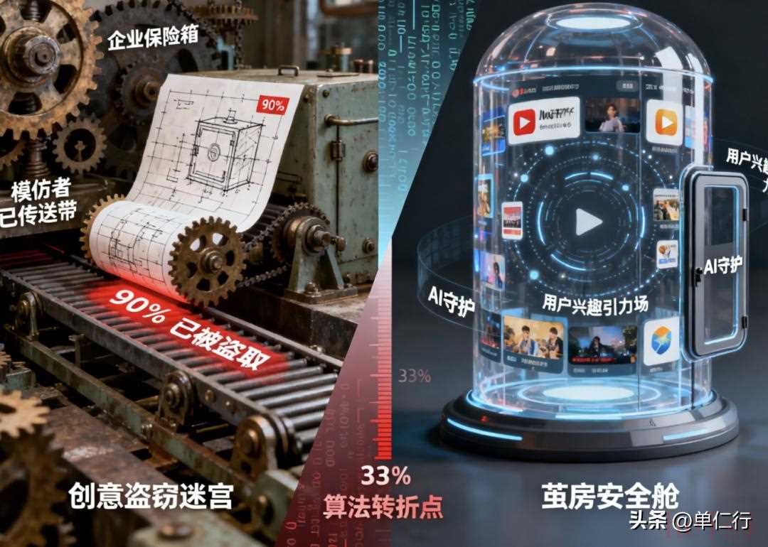 品牌只是需要喚醒他們會(huì)遇到的問題,并且解決問題,用戶自然而然就會(huì)向你靠攏。但問題就在于,我們有沒有客觀去站在用戶的生活場(chǎng)景、工作場(chǎng)景、家庭場(chǎng)景,根據(jù)他的畫像和標(biāo)簽,去認(rèn)真審視他們可能會(huì)存在的需求?所以,從產(chǎn)品的角度上來(lái)說(shuō),無(wú)論什么時(shí)候都是紅海,現(xiàn)在哪個(gè)行業(yè)不是在瘋狂的內(nèi)卷?但是,真正從用戶認(rèn)知的角度出發(fā),今天的市場(chǎng)依然存在著眾多需要解決和改進(jìn)的藍(lán)海需求。品牌要做的就是喚醒它,制造它,滿足它。04第三步、創(chuàng)造隔離。假如我們看到的需求,別人也發(fā)現(xiàn)了,他要跟我爭(zhēng)搶用戶怎么辦?甚至他發(fā)現(xiàn)的比我早怎么辦?這個(gè)問題在過(guò)去是無(wú)解的,每個(gè)企業(yè)都會(huì)無(wú)比小心的保護(hù)自己的客戶,并且時(shí)刻警惕對(duì)手有什么新的創(chuàng)意。如果你今天發(fā)布了什么新產(chǎn)品和新工藝,一個(gè)星期之后,市場(chǎng)上肯定有模仿你的。但這個(gè)問題今天被緩解了,答案在于今天的算法機(jī)制和數(shù)據(jù),特別是今天短視頻直播平臺(tái)和AI搜索,它給品牌創(chuàng)造了一個(gè)隔離的空間,換句話來(lái)說(shuō),就是“信息繭房”。