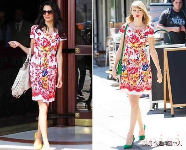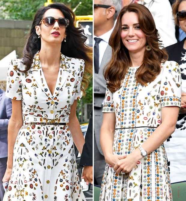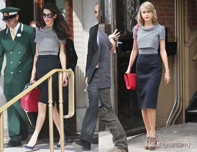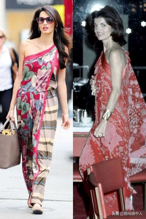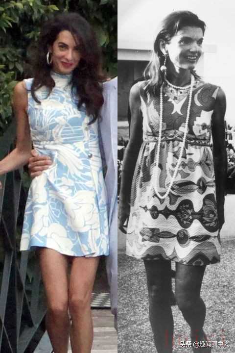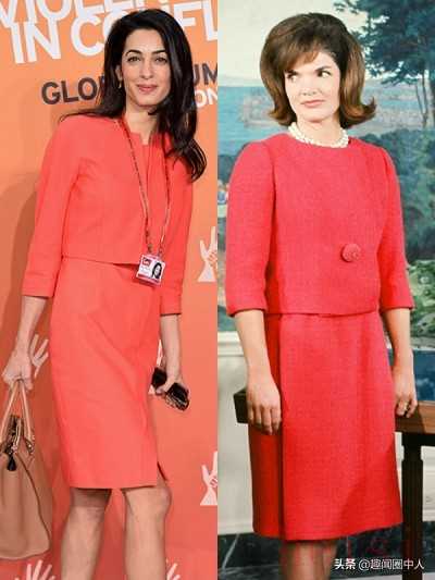 最后她還和大洋彼岸的凱特王妃撞衫了,凱特穿的是品牌改款,更加端莊;阿邁爾配上復(fù)古墨鏡和紅唇,更有腔調(diào)一些。