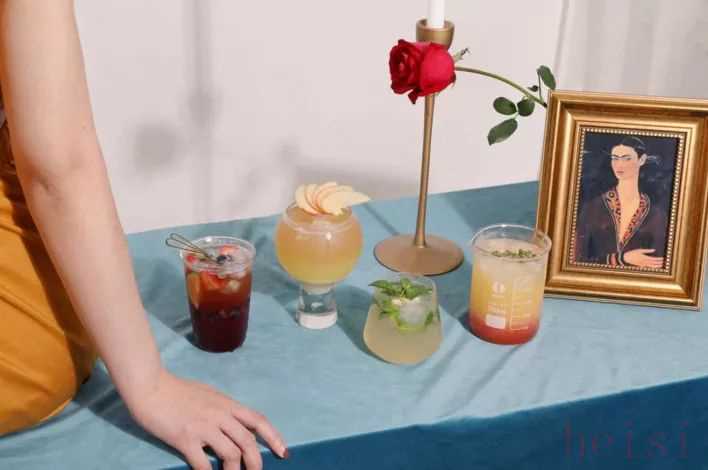 喜茶在這里有幾款茶極客經典產品出品:比如白朗姆酒與茉莉云毫結合的“春不夜”、梅酒與四季春高山茶結合的“夏會醉”、龍舌蘭與烏龍茶底結合的“秋晚歸”以及五糧液與早春茶結合的“冬未眠”。
