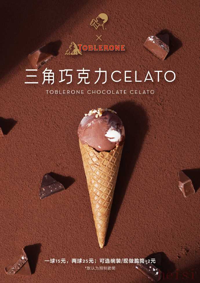 喜茶制冰實驗室“研制”出的Celato有各式口味,比如聯(lián)手三角巧克力的聯(lián)名款三角巧克力Celato,牛奶與巧克力組成絲滑質地,頂層撒上巴旦木碎。