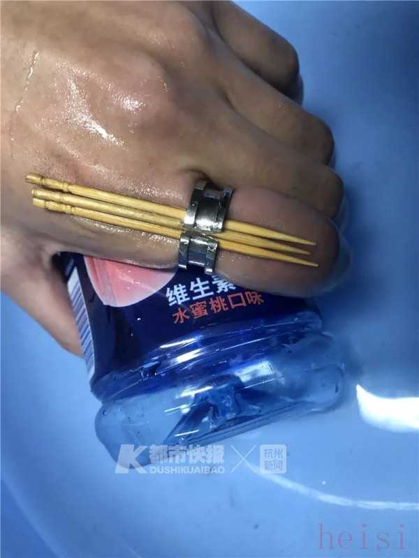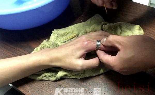 5月27日,小胡收到戒指后很興奮,戴上手指后就迫不及待嘗試開(kāi)酒瓶蓋,可是開(kāi)瓶蓋后的第二天,就發(fā)現(xiàn)戒指在手上怎么也取不下來(lái),期間,小伙子去醫(yī)院也沒(méi)辦法成功取下,最后在醫(yī)生的建議下才找到了消防部門。