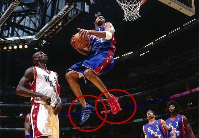麥迪在全明星大賽上穿著一雙兩種顏色的T-Mac3簽名球鞋!
