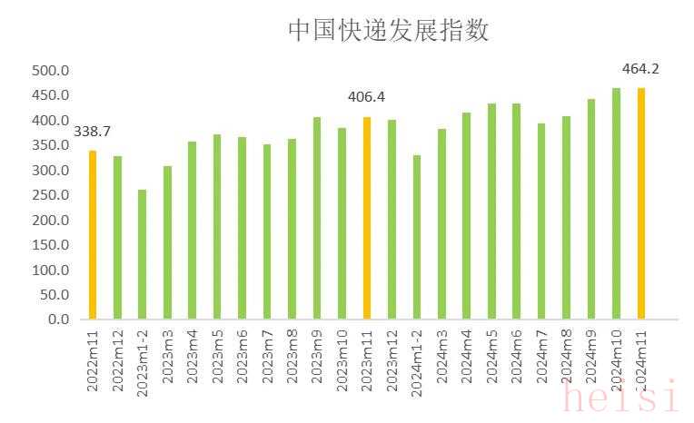 2、11月中國快遞發(fā)展指數(shù)為464.2,同比提升14.2%