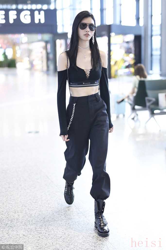 整身黑衣的奚夢(mèng)瑤性感又酷帥,Alexander Wang的短上衣將女人味和街頭風(fēng)融合得淋漓盡致,黑色高腰褲把本就纖長(zhǎng)的雙腿線條修飾得更加完美,單邊戴耳環(huán)、項(xiàng)鏈疊戴,整身造型細(xì)節(jié)之處都很考究。
