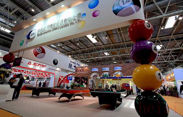 中國國際體育用品博覽會現(xiàn)場,星牌臺球桌展臺。