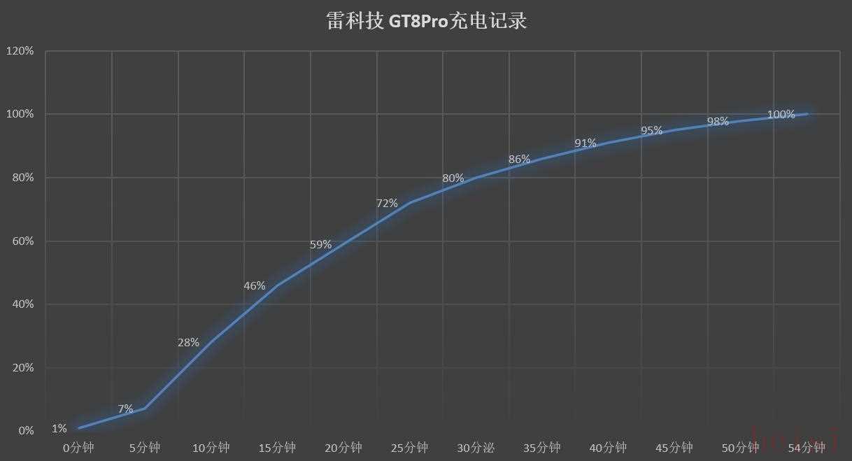 120W有線+50W無線的組合,倒是讓我覺得有些驚喜。實(shí)測120W有線充電,從1%充至50%用時(shí)18分鐘,完全充滿僅需54分鐘。同時(shí),旁路充電功能對于游戲玩家來說非常友好,邊玩邊充也不燙手,能夠有效保護(hù)電池壽命。