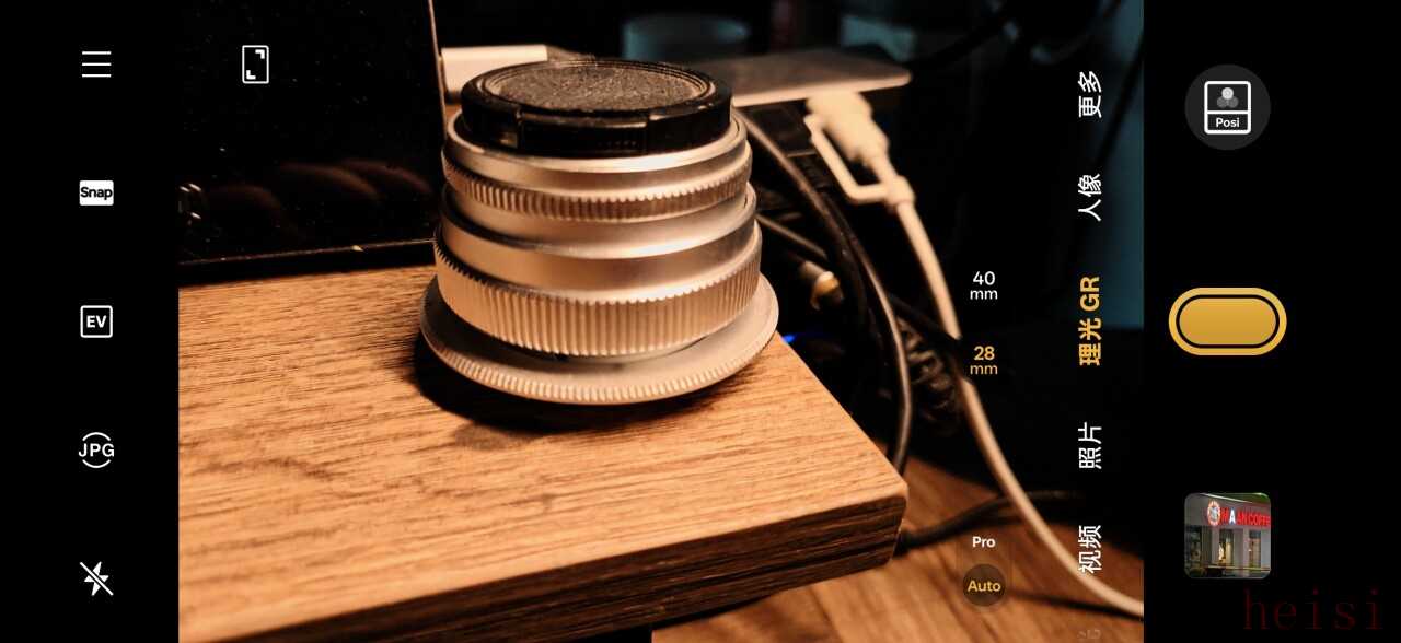 其次,理光模式的自由度不高。它默認(rèn)只提供等效28mm、40mm兩個(gè)焦段,可以通過點(diǎn)擊切換到35mm、50mm兩個(gè)焦段。雖然這樣的設(shè)計(jì)致敬了GR系列經(jīng)典的焦段,但對于習(xí)慣了自由變焦的手機(jī)用戶來說,還是有些束手束腳。