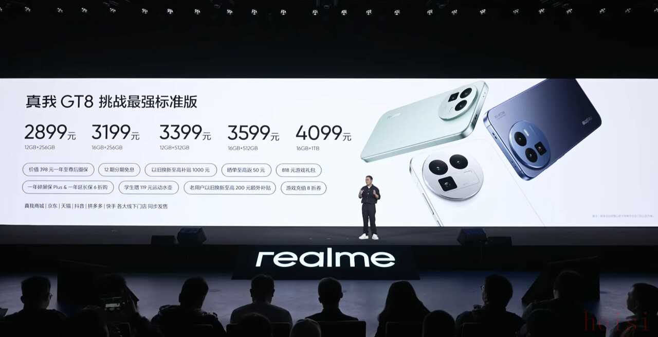 價(jià)格方面,真我GT8 Pro售價(jià)3999元起,12+512GB售價(jià)4499元,而頂配1TB版則來到了5199元。