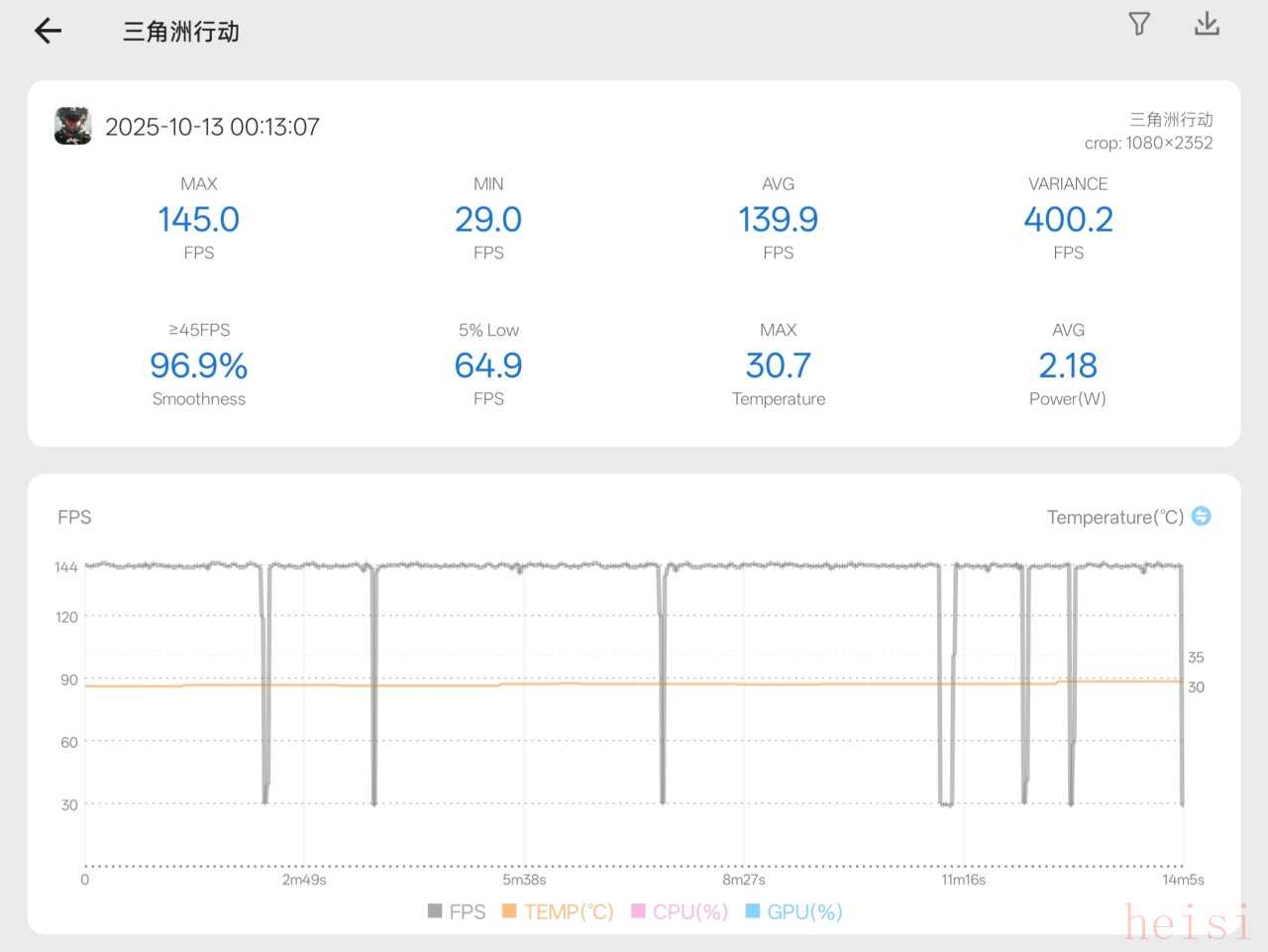 在實(shí)際游戲中,我們先選擇了最高144幀的《三角洲行動(dòng)》進(jìn)行30分鐘實(shí)測。