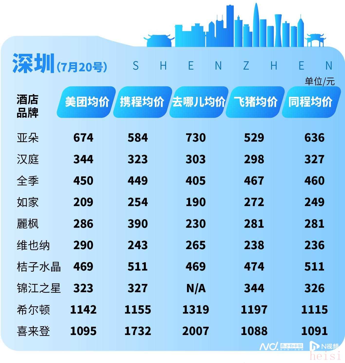 深圳市場(chǎng)則呈現(xiàn)截然不同的景象。經(jīng)濟(jì)型和中端品牌漲幅相對(duì)有限,維也納僅從245元微漲至296元,漲幅20.8%;麗楓成為價(jià)格最穩(wěn)定的品牌,從315元微調(diào)至321元,漲幅僅1.9%,且在五大在線平臺(tái)均保持227元不變。高端市場(chǎng)出現(xiàn)深度回調(diào),希爾頓均價(jià)從1176元降至981元,跌幅16.6%;喜來(lái)登跌幅更為顯著,從1479元驟降至893元,跌幅39.6%。平臺(tái)數(shù)據(jù)同樣反映了這種弱勢(shì),希爾頓在美團(tuán)平臺(tái)從1142元降至960元,降幅15.9%。