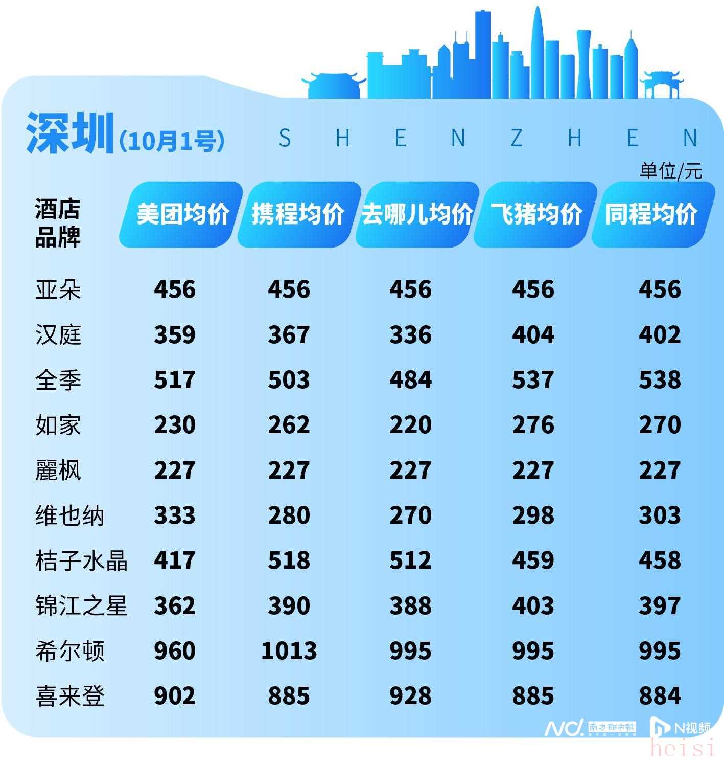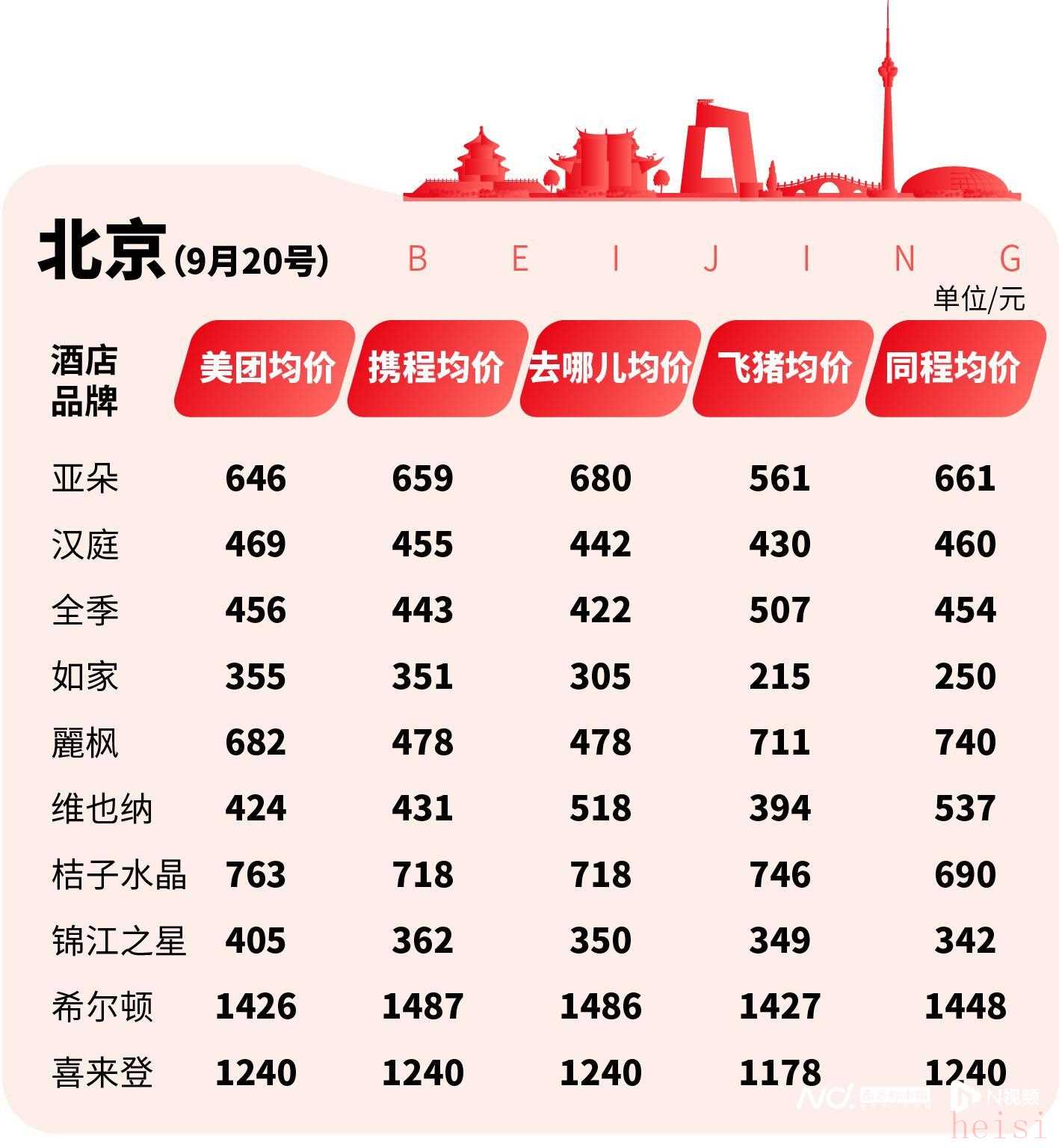 對(duì)此,南都鑒定評(píng)測(cè)實(shí)驗(yàn)室“酒店價(jià)格指數(shù)”課題組本期聚焦9月20日至10月1日,以北上廣深為觀察樣本,深度追蹤攜程、美團(tuán)、去哪兒、同程旅行、飛豬等五大OTA平臺(tái)上十大商務(wù)酒店品牌的價(jià)格動(dòng)態(tài)。核心聚焦國(guó)慶假期臨近及期間的價(jià)格波動(dòng)幅度,并特別對(duì)比分析今年漲幅與往年同期的差異,力求為消費(fèi)者在節(jié)日出行高峰期的精明決策,以及業(yè)界洞察市場(chǎng)趨勢(shì),提供多維度、有價(jià)值的參考坐標(biāo)。