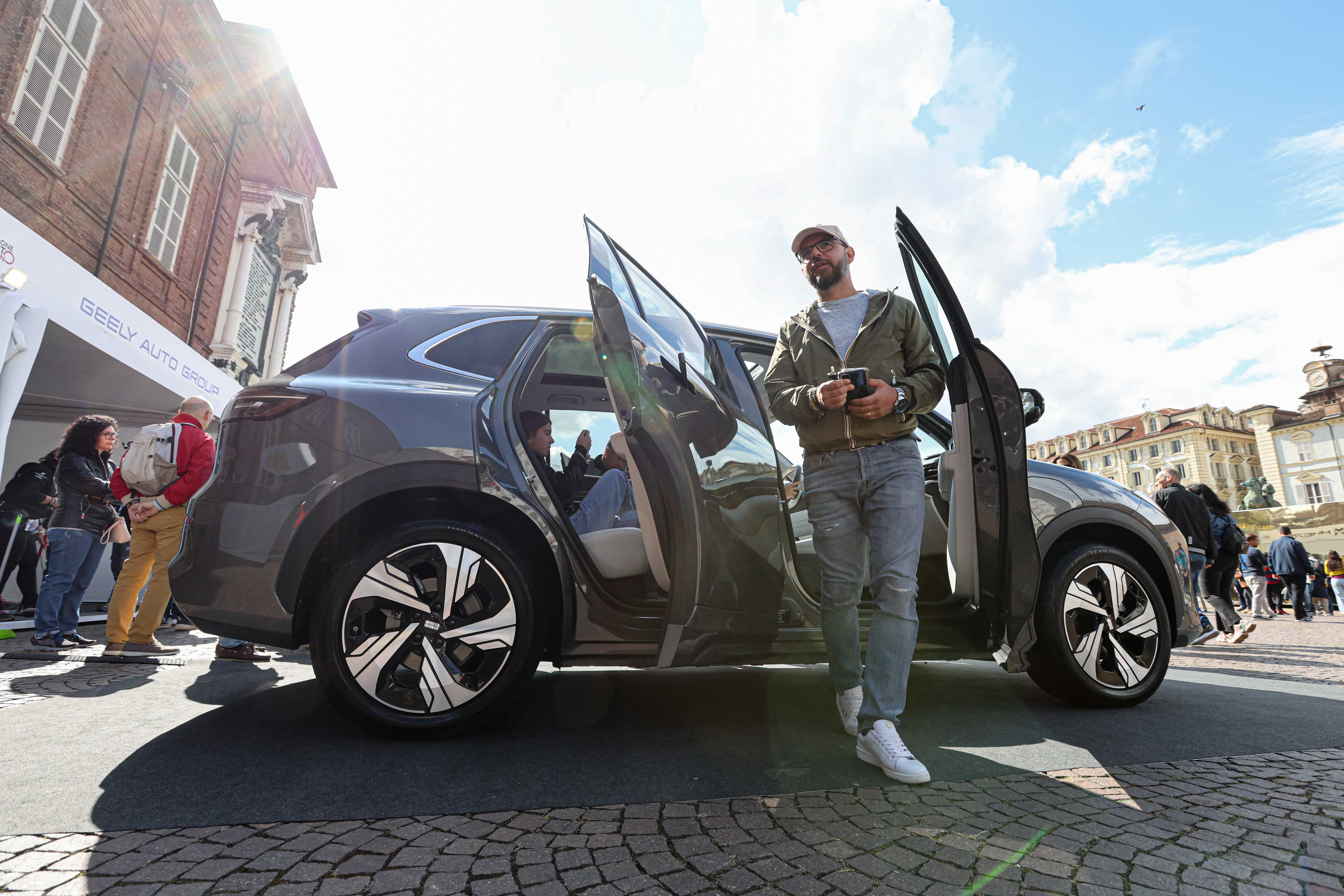 9月27日,在意大利都靈,人們在2025年都靈車展上的吉利汽車展區(qū)參觀體驗。新華社記者 李京 攝
