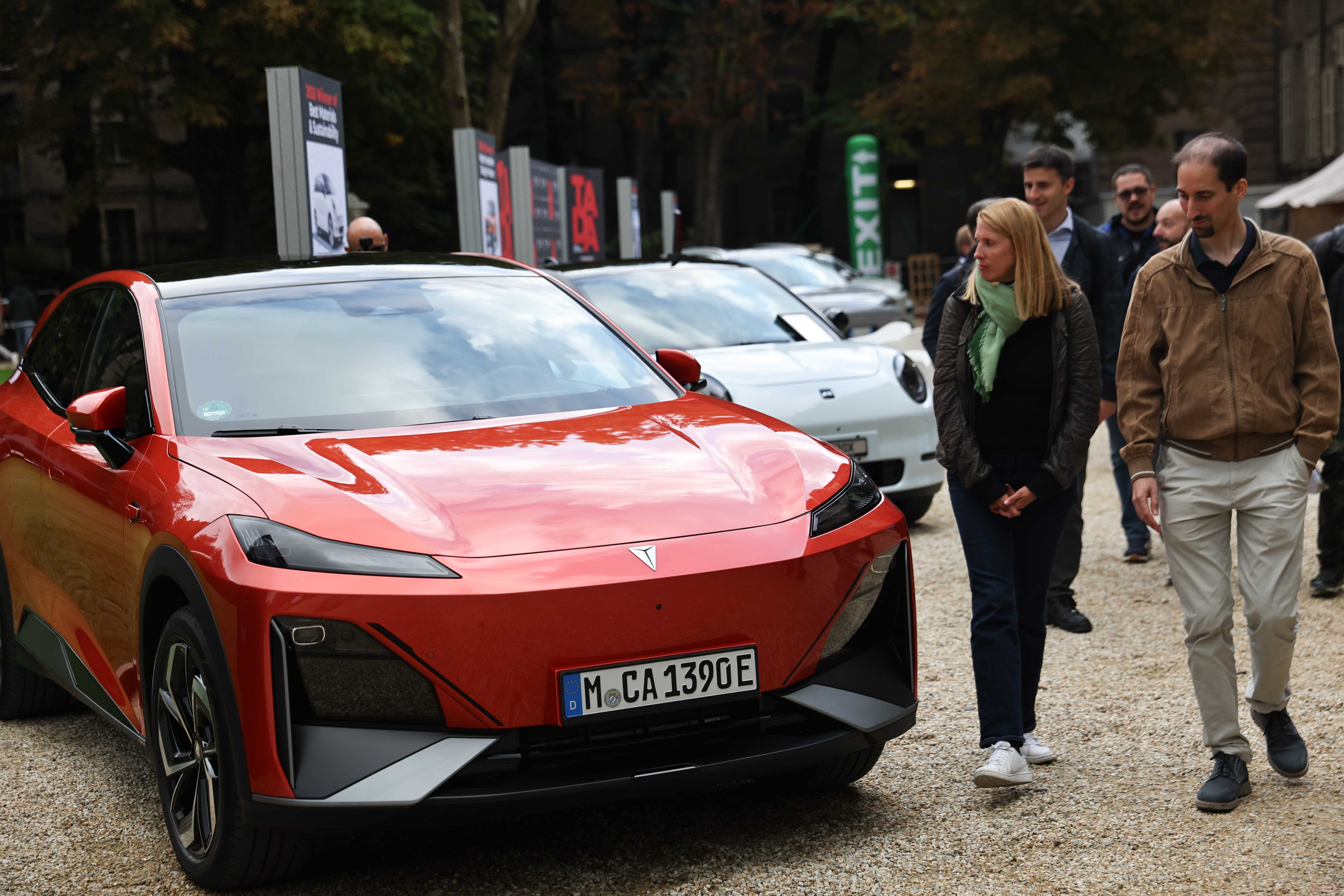 9月26日,在意大利都靈,人們觀看“都靈汽車設(shè)計獎”獲獎汽車。新華社記者 李京 攝